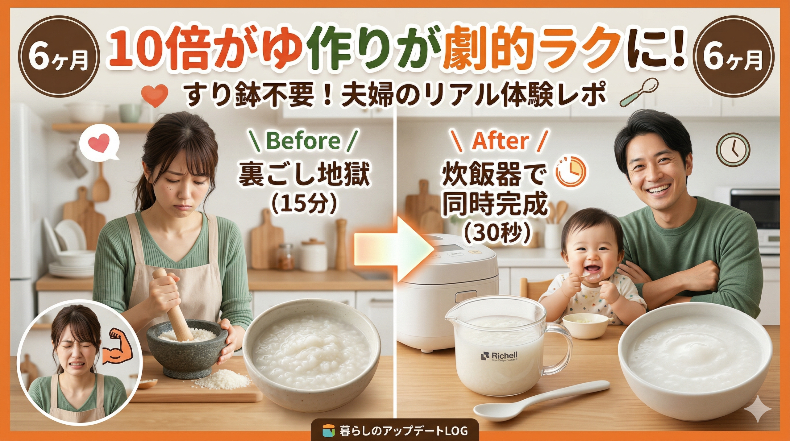 「10倍がゆの作り方4パターン」選びで迷子になっているママへ。夫婦で本気で比較した結果、見えてきた結論をお届けします。